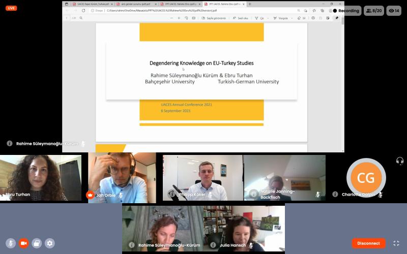 The panel was chaired by Jan Orbie, and speakers included Julia Hansch, Natalie Janning-Backfisch, Özge Zihnioğlu, Rahime Süleymanoğlu-Kürüm, F. Melis Cin, Ebru Turhan, Charlotte Galpin, Philipp Köker, Nele Weiher, and Anja Schollmeyer.
